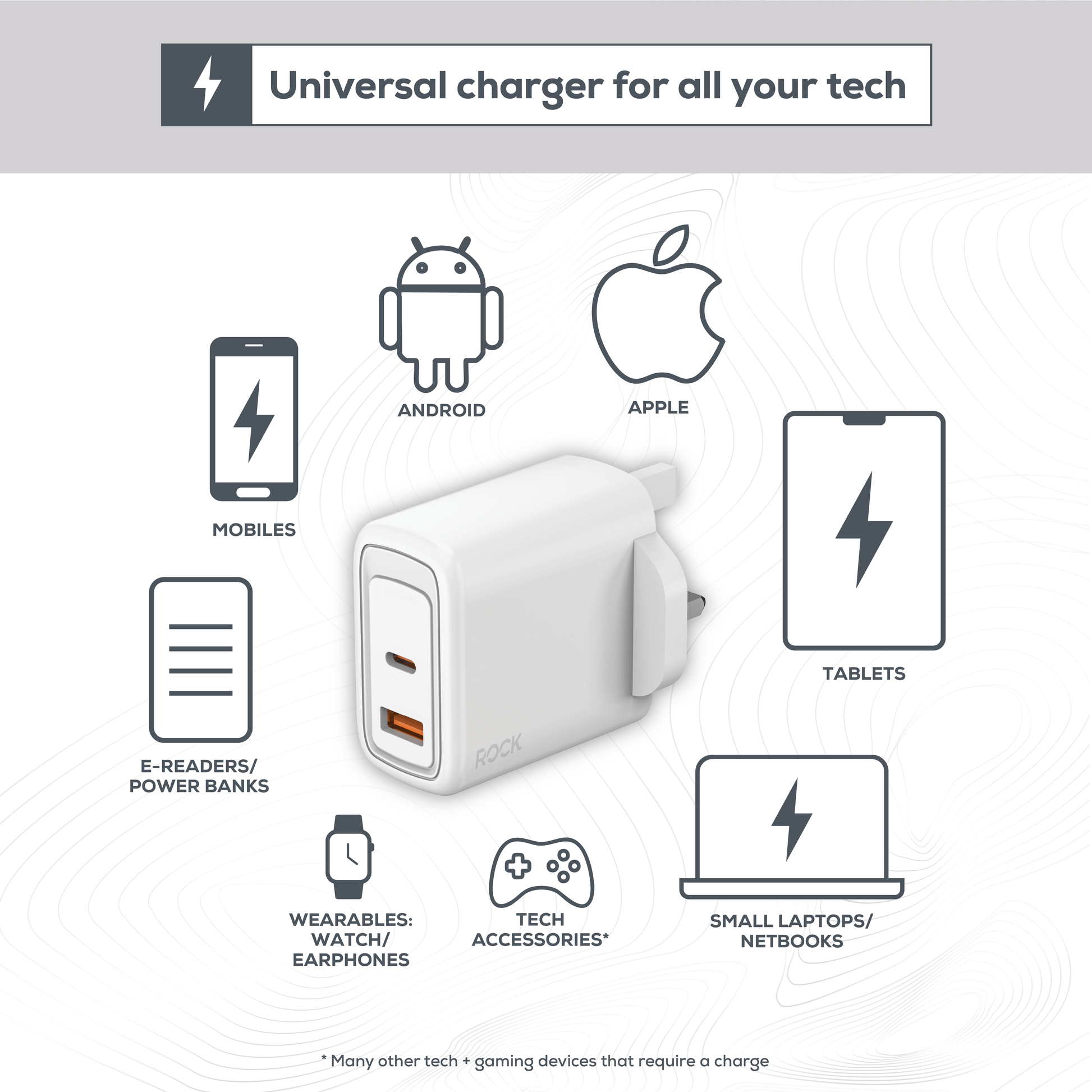 Rock’s Go Power 45 Watt GaN Dual Wall Charger is built to keep your power-hungry devices charged, protected, and ready when you need them most.