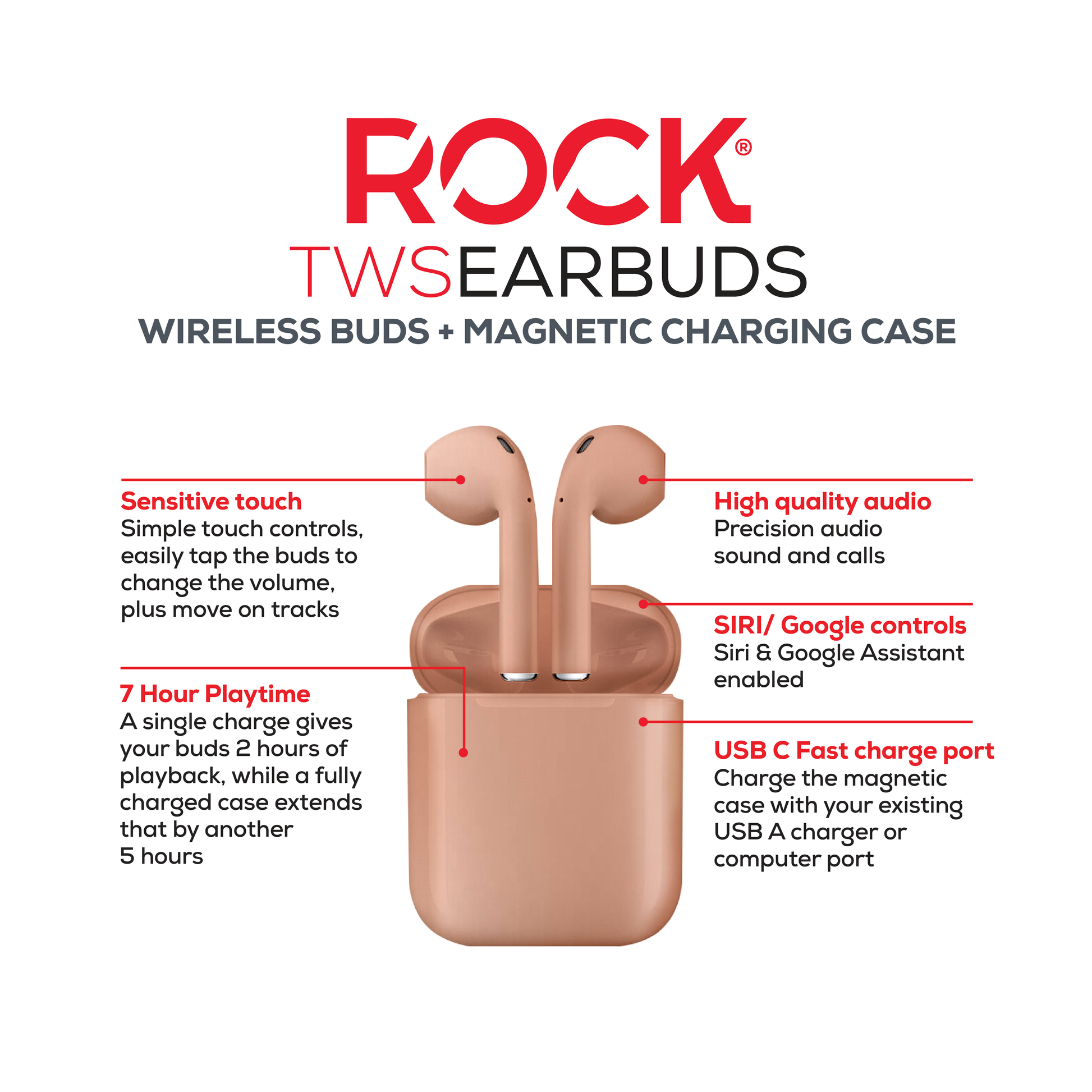 - Long Battery Life: Up to 7 hours of playtime (2 hours in earbuds + 5 hours with charging case).